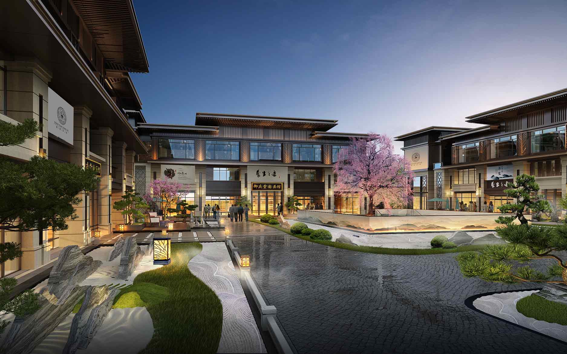 通过创意川西建筑设计,打造商业街和街巷院落空间,营造禅意康养环境,实现区域商业价值的提升。
