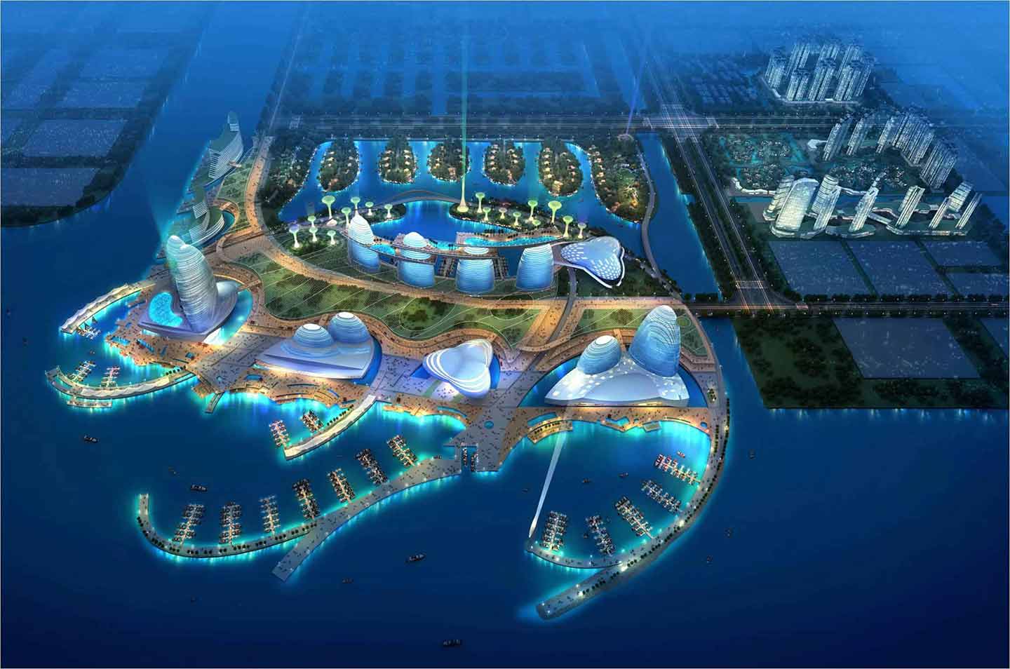 项目以建设游艇主题高端综合体为目标,包括游艇高端商务区、岭南水乡高端生活区两大板块,围绕高端游艇主题,规划建设顶级游艇俱乐部、五星级高端酒店、一站式免税shopping mall、超5A级企业总部基地、世界低碳经济高峰论坛永久会址、高端游艇别墅等项目,形成完善高端游艇休闲、商务、度假服务链。为提升项目影响力,将高端游艇会与国际低碳交易研发平台相结合,建设世界低碳经济高峰论坛永久会址,提供粤港澳商务、交流首席平台。通过完善的设施配套和行业影响力,使莱蒙生态水城成为粤港澳优质生活圈示范区标杆项目。